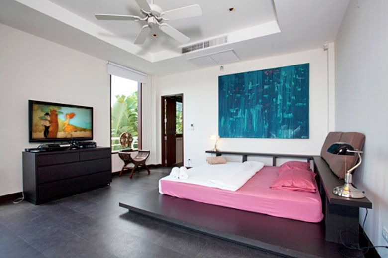 On the ground floor, you will find the master bedroom (1) with a king sized four-poster bed, which gives the room a very grand appearance. The master bedroom has amazing views over to Phuket City, the beaches, and the surrounding mountains and has its own private access to the pool area. The master en-suite bathroom has a Jacuzzi bath for 2 people, shower, washbasin and WC.