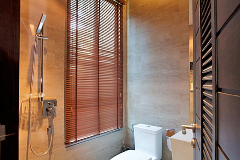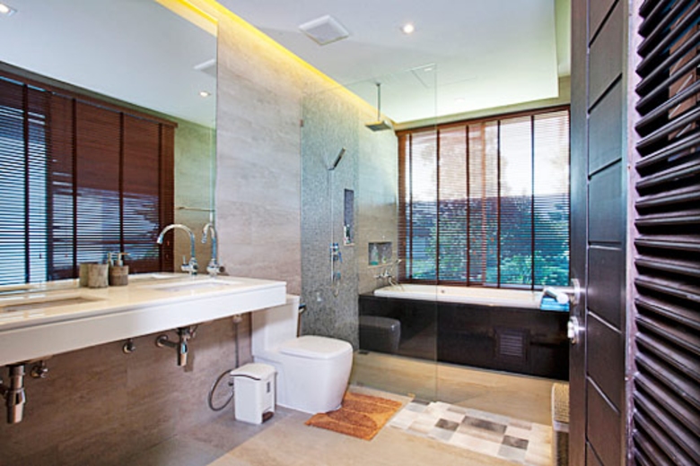 There are two bathrooms in the property, one which is ensuite for the master bedroom, and the second that is a guest bathroom. The master ensuite has a small Jacuzzi-bathtub, shower, wash basin and toilet. The second bathroom has a shower, wash basin and toilet.
