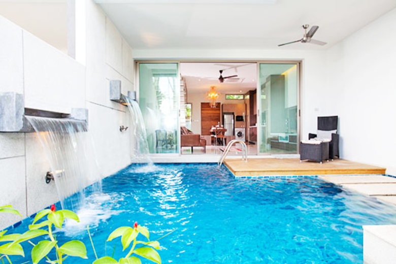 One of the newest villas in town, the Friendship villa was just completed in August 2011. The ultra sleek villa has two levels and two bedrooms giving guests a dazzling view of the iridescent bay. Also included on this property is an on site pool and a serene waterfall cascading in the courtyard. While enjoying this little piece of heaven, don’t forget that the nearby Chalong beach is great for a variety of activities such as walking, jogging, swimming or kite-surfing.