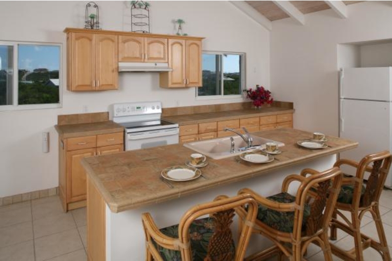 You can curl up in the comfortable and serene ambience of our 4 bedroom villa rental Providenciales, which comes with a king-size bed, a twin bed and a twin trundle bed to accommodate 13 vacationers. The views of wide expansive ocean from bedrooms are awesome. The four bathrooms are aptly fitted with showers and walk-in closets for your convenience.