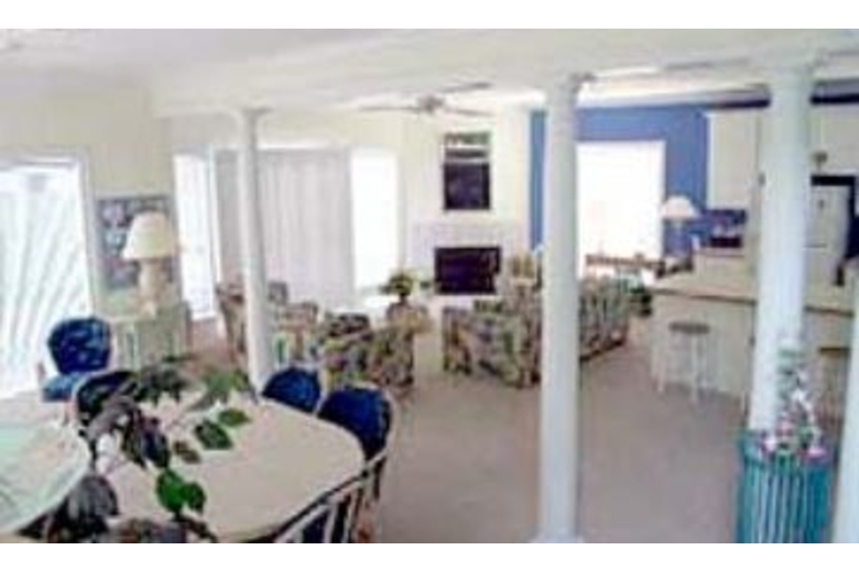 This large home features five bedrooms and four bathrooms. Two of the bedrooms have queen sized beds and the remaining three bedrooms have two twin sized beds each. More sleeping space is available with two queen sized sofa sleepers. The master bathroom is furnished with a luxurious jacuzzi tub. The living areas are spacious and open. The kitchen is fully equipped with all necessary appliances and counter-top seating. The living room is next to the kitchen is contains a TV. This home has ceiling fans and carpeted floors throughout.Surrounding Description