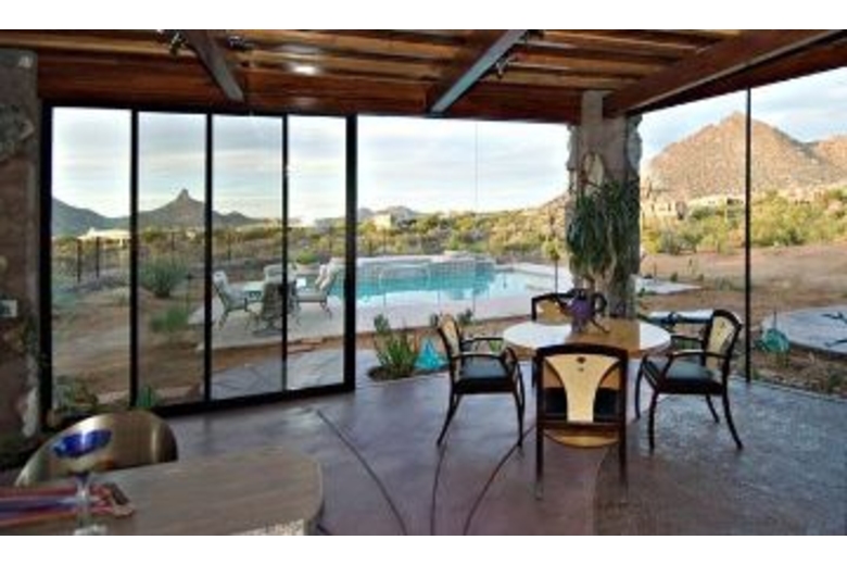 Casa De La Vista is a contemporary home unlike any other contemporary home you have ever seen. The design blends elements of Frank Lloyd Wright and Paolo Soleri. The walls of glass bring the outdoors inside and offer panoramic views of Pinnacle Peak and the surrounding desert.