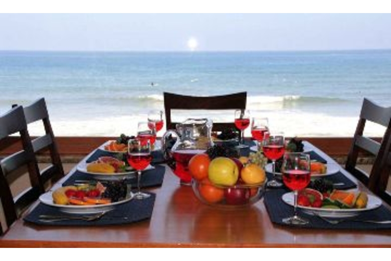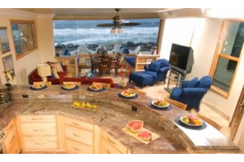 The retreat offers two kitchens with stainless steel appliances, and granite countertops. One offers a beautiful tile backsplash and a very large breakfast bar with seating for six. The dining area is elegant and affords spectacular views of the ocean. The living area offers not only a great view, but a comfortable place to visit. This home offers six king size beds, three queen beds, and eight twin beds. The linens are provided including beach towels for twenty eight. There are four washer and dryer units, so you will not have to take home dirty laundry.Surrounding Description