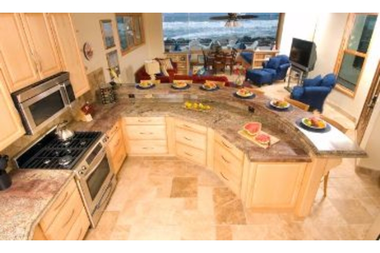 The living area affords fabulous views of the ocean and a cozy place to gather. This home offers two kitchens with stainless steel appliances and granite countertops. The kitchen has spices and cookware for your use. This home offers six king beds, three queen beds and eight twin window beds. Enjoy four washer and dryer units, and more to make this retreat feel like a home away from home.Surrounding Description