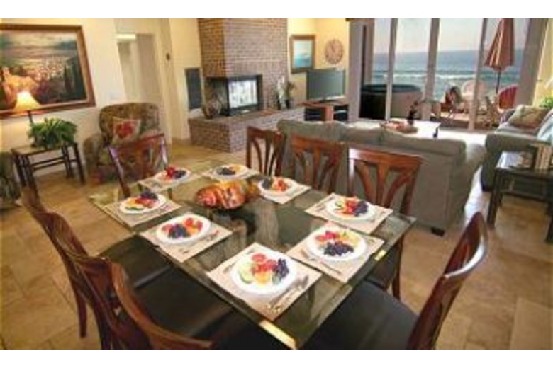 Escape to this huge fifty two hundred square foot single family home sitting right by the ocean. This home has two full kitchens with granite counters, travertine flooring, large and open dining/living room areas, fireplaces and more. Bring the entire family, or two or three families, this retreat sleeps seventeen guests.