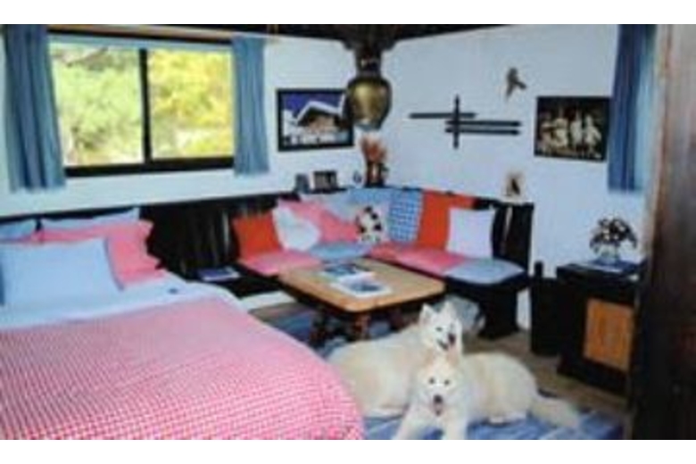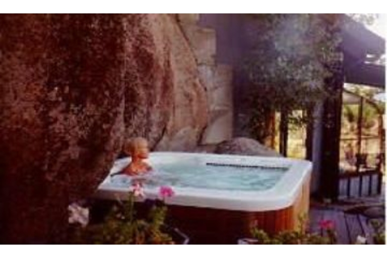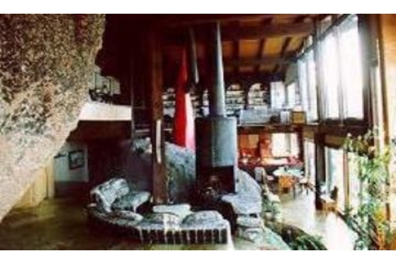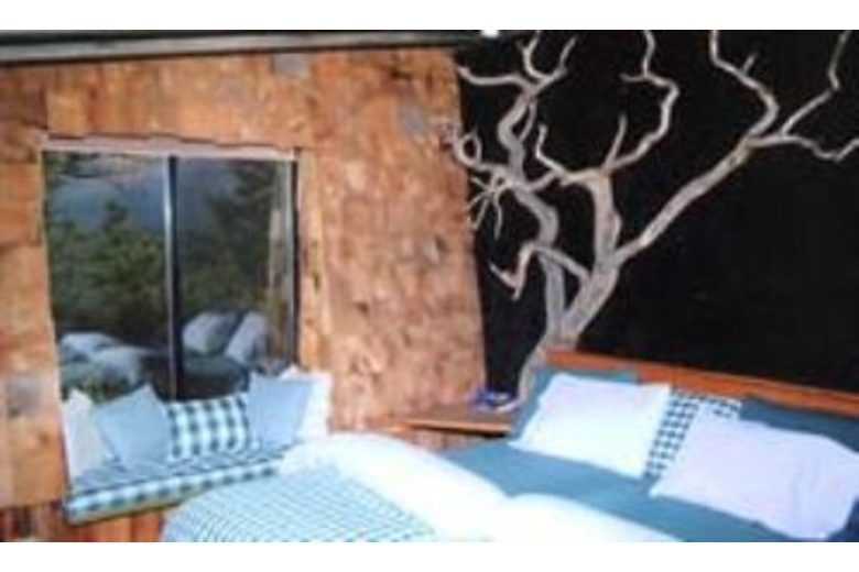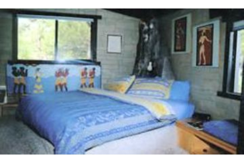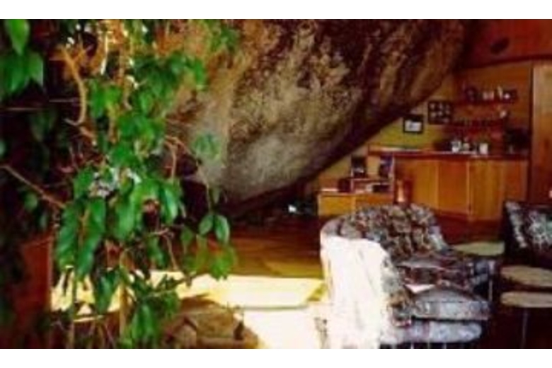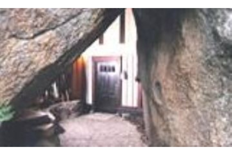 The end of the 50x35 ft. living room is formed by a single stone. In the center of this great room lies another boulder and a mossy trout pond, bringing the natural beauty of the surrounding landscape, patio and lawns inside. Opposite the living room's glass solarium is the dining room, breakfast corner and tiled kitchen. Two gigantic fireplaces rise and pass through the room's 23 foot ceiling. Each bedroom is decorated with a unique and distinctive decor. The unusual Austrian-styled "Strube" has its own stucco fireplace and provides a separate hideaway for games or intimate conversation. There is even a library. To reach the front door, one must enter into a great stone cavern formed by massive granite boulders under a sod roof. There are two sweeping, curved balconies which provide additional views of the mountain peaks and green forests that have made the Tahoe Basin world famousSurrounding Description