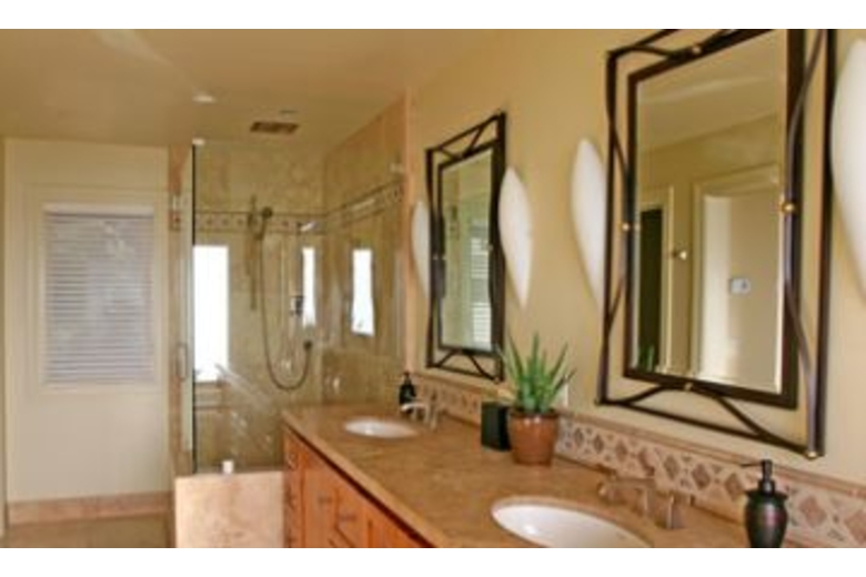 This retreat offers two master suites and two guest bedrooms with king and queen beds respectively. Three of the four marble tiled bathrooms have floors that heat, including a pool side bathroom, walk in showers and upgraded fixtures and there is also a powder room. The kitchen is a large and modern gourmet island kitchen with granite counters, two dishwashers, six burner gas range top, built in espresso/coffee maker, sub zero refrigerator, and a wet bar fully equipped with an ice maker, bar fridge and wine fridge. The dining room and living area are set off the kitchen and the outdoor swimming pool and hot tub are just a few steps out the sliding glass doors where views, outdoor dining, or a soak in the hot tub all wait for you. The beautiful lighted evening views are lovely, and accent an evening cocktail, dining, or just doing nothing but soaking in the view, and surrounding quiet. There are flat screen TV's in the living room and bedrooms, stereo sound system and wireless internet, indoor laundry area, and also an outdoor shower area when coming to or from pool/hot tub.Surrounding Description