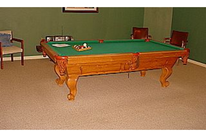 It is approximately 5,000 square feet and will accommodate 14 people. The very bottom floor is a large game room with a pool table and a ping-pong table. The master bedroom has a jacuzzi tub in the bathroom. This house also consist of an atrium and a study room for some quiet time.Surrounding Description