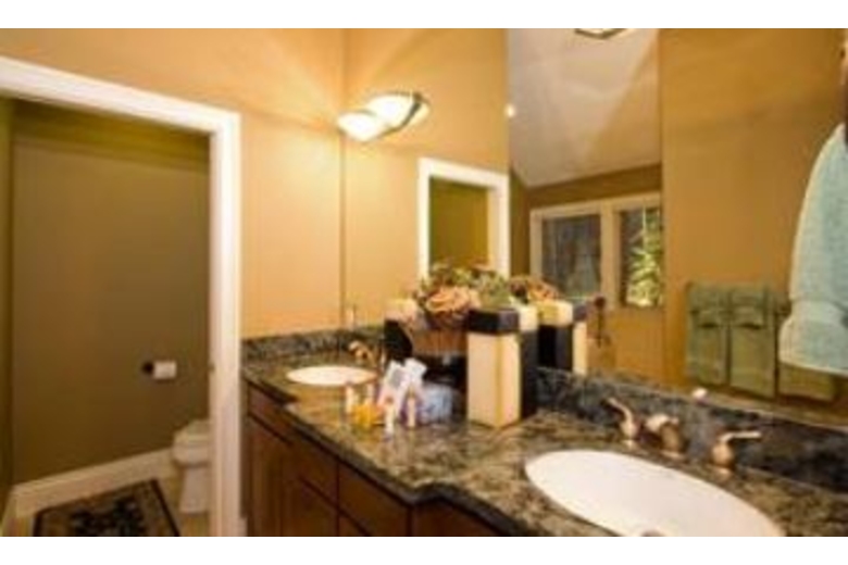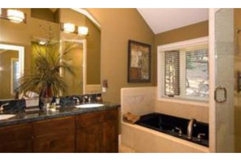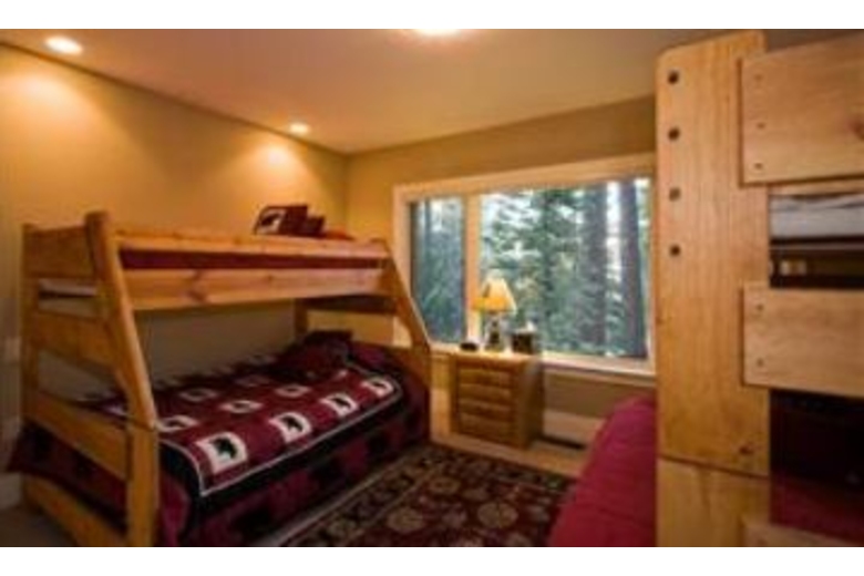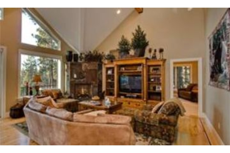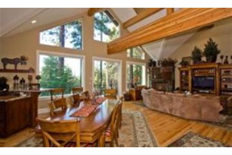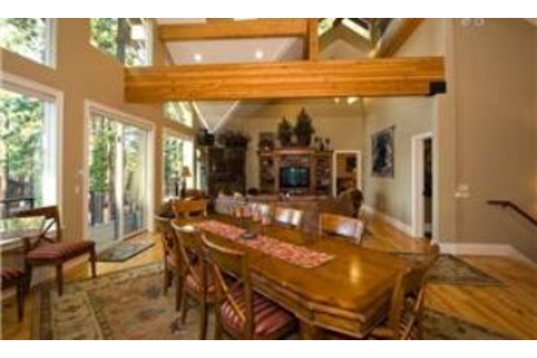 This vacation home has a rustic elegance found throughout in the decor and furnishings. Enjoy the hardwood flooring, granite counters, and vaulted ceilings offered by this four bedroom and four and a half bathroom rental. The open and spacious living room has a large flat screen television and comfortable seating perfect for entertaining. The fully equipped kitchen has dark wood cabinetry, stainless steel appliances, and an iPod docking station. The dining room has a large wood table with upholstered chairs for eight guests. The plush bedding, includes two king beds, one queen bed, and two sets of bunk beds each with a twin and full sized mattress. The game room has a pool table, and a ping pong/air hockey table, and an iPod docking station. Enjoy the private hot tub and close proximity to skiing, casinos, and the lake.Surrounding Description