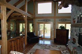 This five bedroom, four bath home has a wood-burning fireplace, stainless steel appliances and hardwood floors. The living area has a DVD player, VCR, stereo with CD player and cable TV. The fully equipped kitchen has a dishwasher, microwave and many other conveniences. The dining area has a table and six chairs. The first bedroom has a king bed and the second bedroom also has a king bed. The third and fourth bedrooms each have a queen bed. The fifth bedroom has two twin beds. For two extra guests, there is a double sofa sleeper in the living area.Surrounding Description