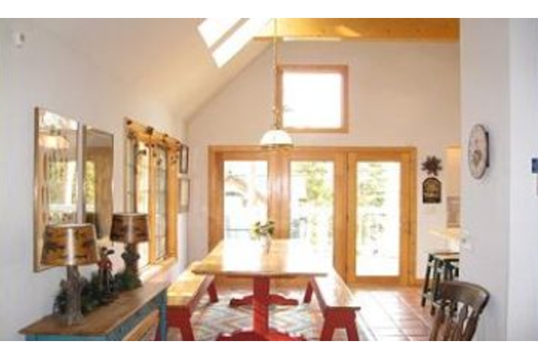 This home features five bedrooms plus den and four bathrooms, there are beautiful vaulted ceilings and each room is comfortably furnished. The living room has a gas fireplace and plenty of seating space for the whole family or group. The gourmet kitchen features a Vulvan commercial stove and all necessary appliances and cookware to prepare a homemade meal. There is an island with seating for four people and a dining table seats ten people. Downstairs there is a family room with a sofa sleeper, DVD/VCR player and TV so you can watch your favorite movie or play games. On the main level there is a bedroom with a king sized bed and a bathroom it shares with the main level. There are two bedrooms downstairs. One has a Queen bed and second with a Captain Bunk with a Trundle underneath. The third floor has two more bedrooms. One with a king sized bed and bright skylights and the other room is furnished with a queen sized bed. Barbecue outside on the deck while enjoying the beautiful views. More amenities include a one car garage, washer and dryer, and WIFI.Surrounding Description