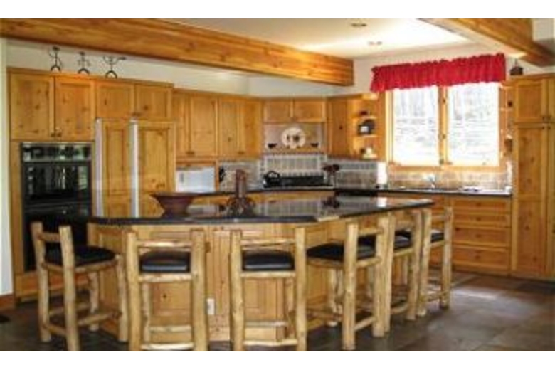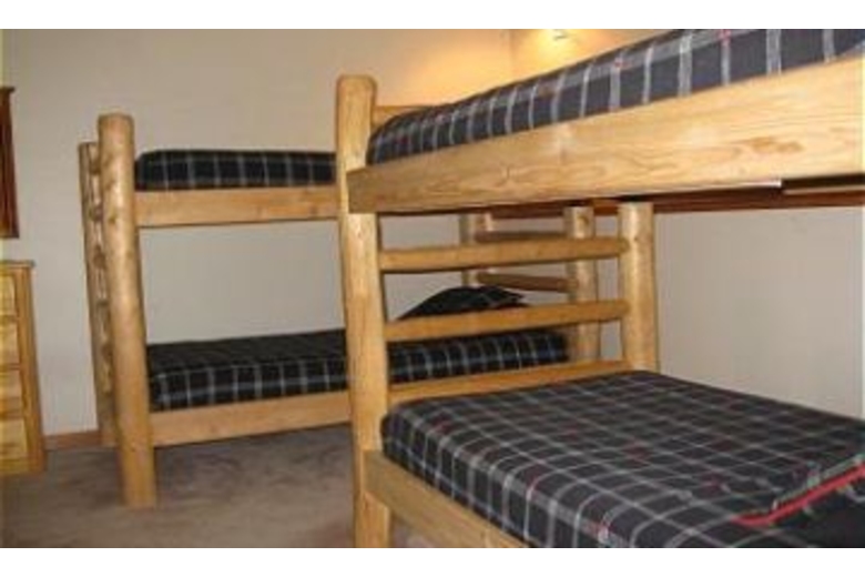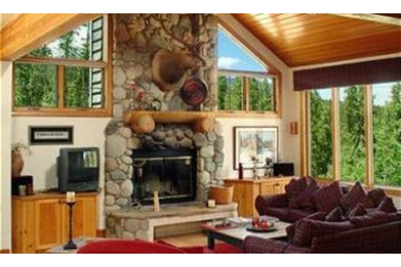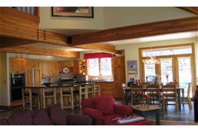 There are 4 bedrooms, a loft and 4 bathrooms and can sleep up to 14 people. On the upper level is bedroom 1 with a queen bed, TV, and it shares a bathroom with the study. The Study is a semi-private room with a trundle bed that converts to a king bed or 2 twins. On the main level is bedroom 2 with a queen bed and a private bath. Bedroom 3 has 2 twin beds with adjoining bath with shower. On the lower level is bedroom 4 and it has 2 pairs of handcrafted log bunks, perfect for the kids. There is also a queen sized sleeper sofa in the rec room. In the living room you will find extensive window areas on 3 sides providing views of the incredible slopes. For your entertainment the living room includes a TV with DVD player, and the large fireplace where you and your family can warm up after a long day on the slopes. The kitchen is fully equipped with everything you need to make delicious home made meals, and has a huge breakfast bar with seating for 6. On the lower level is the rec room with a fireplace, TV, cards, poker chips, board games, providing great entertainment while you spend quality time together.Surrounding Description