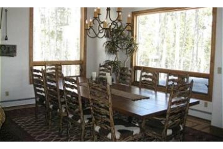 This home has 7 spacious bedrooms plus a study with 6 1/2 baths. For your convenience, the home can be configured to have up to 20 individual beds or arranged in 5 kings, 1 queen, 4 twins (day beds), 2 sets of bunks and sofa sleeper. For your privacy five bedrooms have private baths, 3 with tiled steam showers complete with benches to make your stay comfortable and relaxing. The large, open kitchen is the best feature of the home. Don't worry about having to eat out because this kitchen will save you a lot of money. A 28' granite bar/counter orients toward the living room and assures ample space for multiple cooks as well as interested onlookers. The 48" Dacor range with 2 ovens and Ventahood, stacked Thermador microwave/warming drawer/convection oven, Sub Zero refrigerator, 2 Kitchen Aid dishwashers, trash compactor, Scotsman clear ice-maker, 2 separate sinks and knotty alder custom cabinets create an exquisite setting for weekend cooks as well as professional caterers. The spacious dining room features a wrought iron chandelier, 4X10' alder table, 12 ladderback chairs with pinto fabric seats and an antique Persian rug. A cozy breakfast nook offers glorious views of the mountain and seating for 8.Surrounding Description