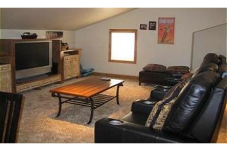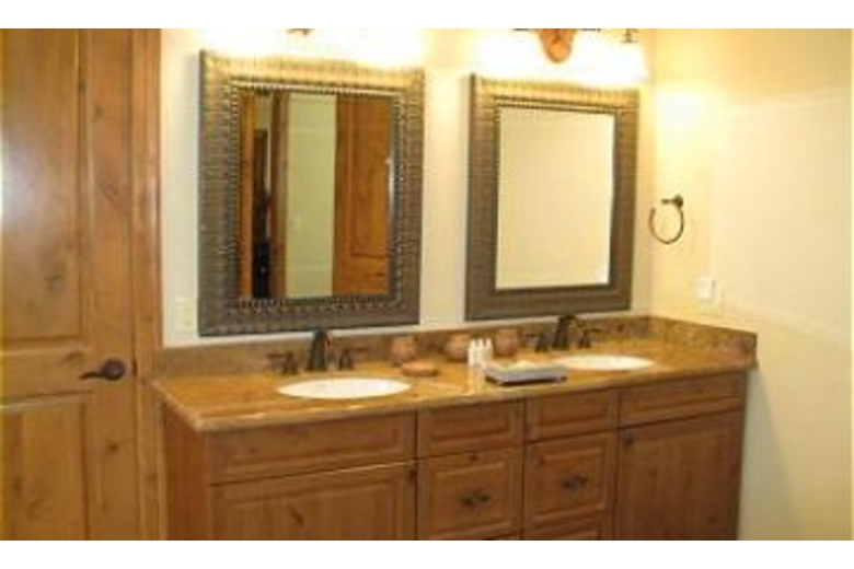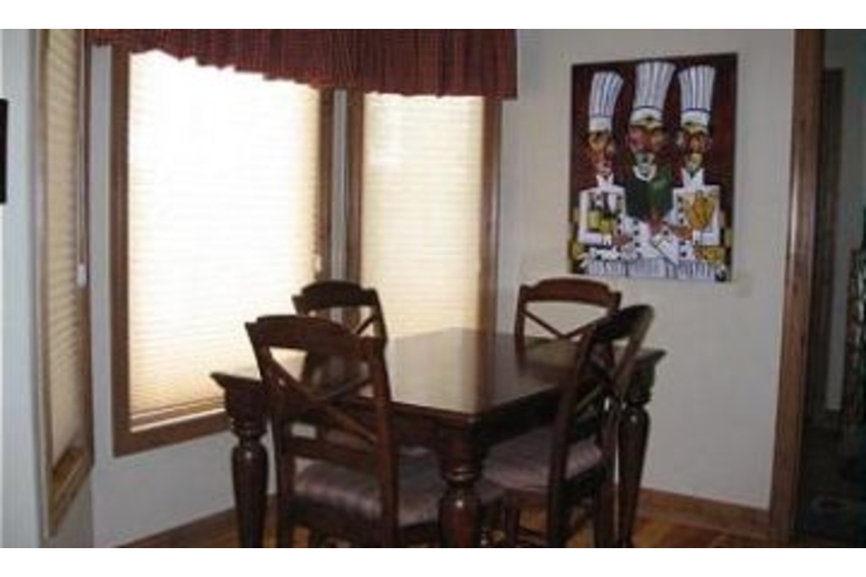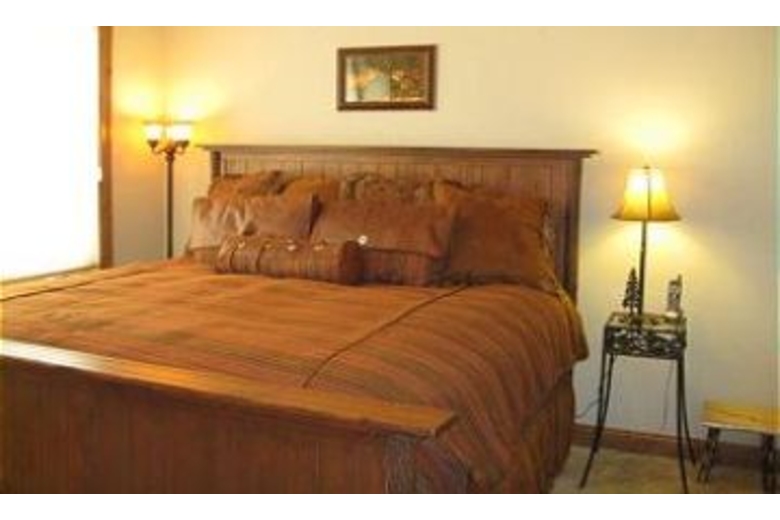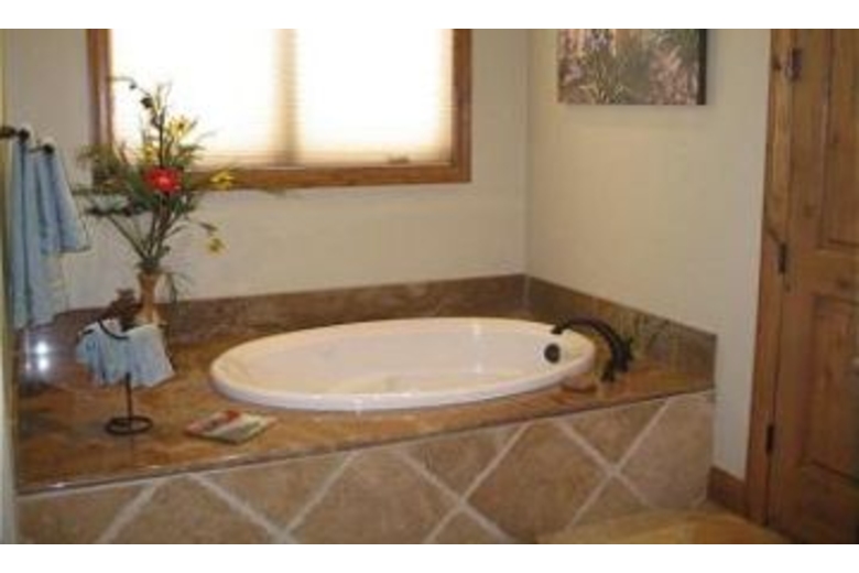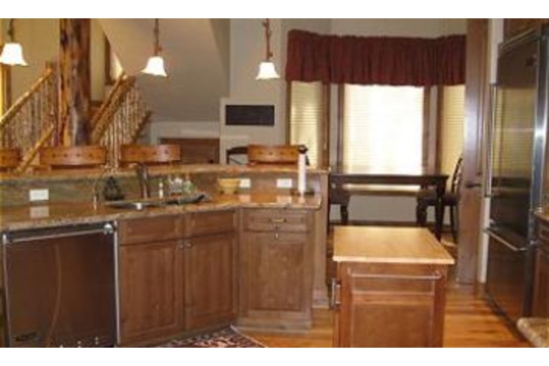 The great room combines a living room with an open kitchen and a formal dining room on the side. The living room boasts a very comfortable leather couch with two reclining leather chairs. There are great views of the magnificent two story rock fireplace and 60” rear projection TV that make this room a great place to relax. The fully stocked kitchen has a stainless steel Viking refrigerator, professional grade 6-burner stove top and top of the line cooking gear along with granite countertops.There is a breakfast bar with seating for four that allows friends and family to visit while dinner is being prepared. A separate formal dining area off the kitchen offers seating for 8 and a casual high top table that seats 4 more. The media room above the garage is the perfect place for kids to gather while adults lounge in the great room. This room is complete with air hockey table, card table and another 60” rear projection TV. Here you can experience true theatre viewing with four reclining, leather theatre chairs, cup holders included. Sit back and enjoy the show! The master bedroom is located on the main level and boasts a king size bed with a 20” plasma TV and a gas burning rock fireplace. The master bathroom offers a jetted soaking tub, separate steam shower and a walk-in closet. The second master bedroom is also located upstairs. This bedroom features a king size bed with 20" LCDTV, walk-in closet and full bathroom. The third bedroom also features a king bed and a 20" LCD TV. This bedroom shares a full bathroom with the fourth bedroom. The fourth bedroom features a queen bed and a 16" LCD TV. Located on the main level, the fifth bedroom includes a captain bunk bed. There is a Sony Playstation 2 in the room, perfect for kids!Surrounding Description