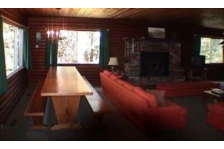 Bed layout: Bedroom one has two double bunk beds. Bedroom two has two double bunk beds. Bedroom three has one double bunk bed and one twin bunk bed. Bedroom four has one twin bunk bed and one day bed with trundle. Four bathrooms, great room. Blue River, Breckenridge Home Rental - A large living room for group meetings and ample kitchen and dinning space. Amenities: Fireplace, Phone, Cable TV, VCR, Full Kitchen, Microwave, Dishwasher, Refrigerator, Ice Maker, Cooking Utensils provided, Linens provided, Washer, Dryer, Private Hot Tub, Garage, No Smoking, No Pets.Surrounding Description
