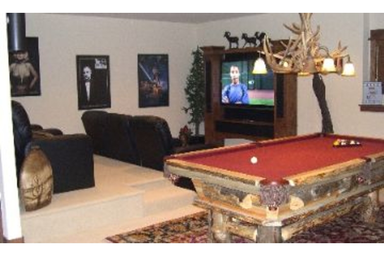 Nestled in the aspen and fir forest with a stream running through the property, it is a great home for two families to enjoy. This home has 4 beautiful bedrooms and 4 bathrooms and can sleep up to 10 of your closest family and friends. There are 2 master suites both with luxurious king sized beds. The other guestrooms include one with 2 twin beds and the other with 2 sets of twin sized bunk beds. If you love great home cooked food, get excited to use the gourmet kitchen with it's state of the art stainless steel appliances. Take advantage of the pool table near the awesome home theater for a fun movie/game night in. You could have a romantic evening in the outdoor hot tub that is on one of the 3 spacious decks. There is a cozy fireplace in the main living area and plenty of comfy seating for you and your guests to gather around and reminisce about the days adventures. You can also use the loft study to catch up on some reading, or keep tabs on what's going on with work by using the office with internet access. There is also a washer and dryer and 2 car garage for your convenience.Surrounding Description