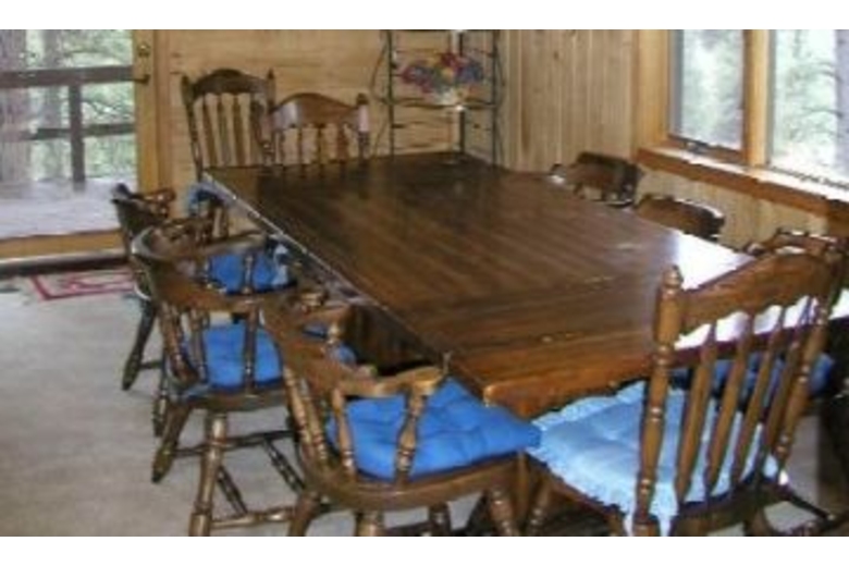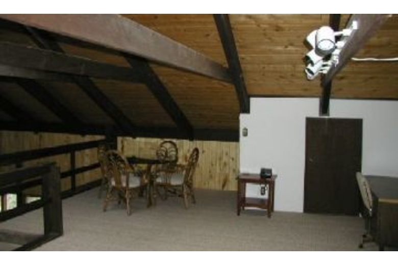 The main level consists of a roomy living area, a kitchen, a dining room, the master bedroom with bath, a guest bedroom, and second bathroom in hall. Your family will enjoy spending time lounging in the comfortable living room that has two sofas, two chairs, a gas log fireplace, and satellite TV and VCR. The spacious kitchen is stocked full with everything you will need to prepare a meal (you supply the food, of course), and the dining area will seat up to ten people comfortably. The master bedroom has a queen bed with its own double vanity bathroom. The second main level bedroom has a queen size bed. The two upstairs bedrooms consist of a queen in one room and two twins in the other. There is a cozy loft area with a loveseat, and a game-table with chairs for your family to play games on.Surrounding Description