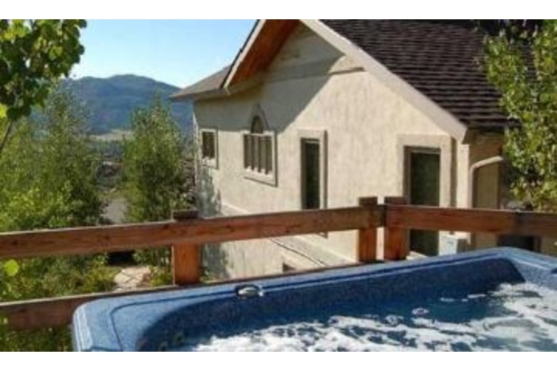 The large deck on the front of the house offers valley wide views, while the rear of the house boasts a children's jungle gym and private hot tub. With 5 bedrooms, a den, an upstairs living room and downstairs living room, Running Bear Place can accommodate a very large family.