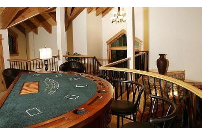 Hand textured flooring, to the one of kind island sink, this property is truly exceptional. Beautiful hardwoods all around, stainless steel appliances, granite countertops, full wet bar, two entertainment centers, two washer and dryers sets, hot tub, pool table.. the works! Downstairs - There is one bedroom (two bunkbeds), one bathroom, and a large TV/entertainment room (TV, couch, etc.) that includes an XBox 360 game console. Also, there is a washer and dryer on this floor. Main floor - Here you will find a very open space connecting the dining room, family room and kitchen into one entertainment room. There is also one bedroom(King Bed), one full bath, and one and a half bath. As you look up from the main floor family room you will find grand vaulted ceilings with exposed beams. Upper floor - On this floor you will find a balcony that over looks the spaces below along with the master suite(King Bed with full bath inc. jetted tub, jetted shower, and washer and dryer). There is also a 4th bedroom(King Bed)on this floor with its own full bath.Surrounding Description