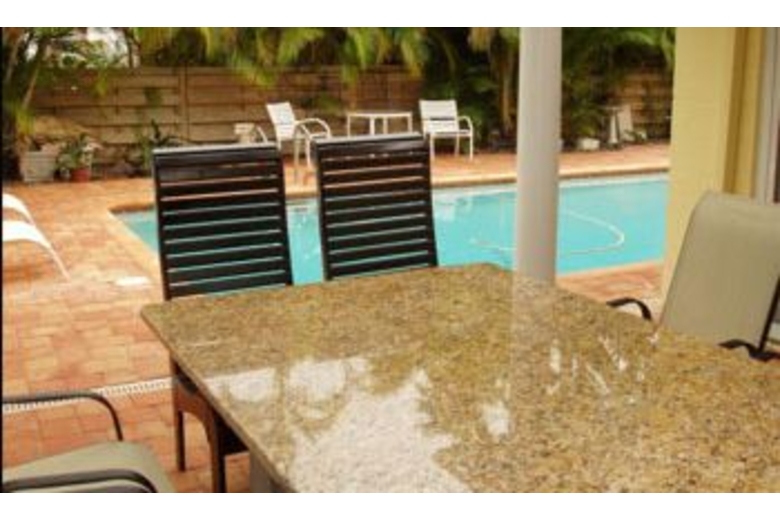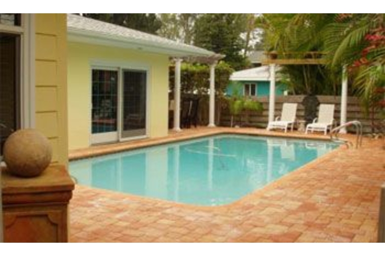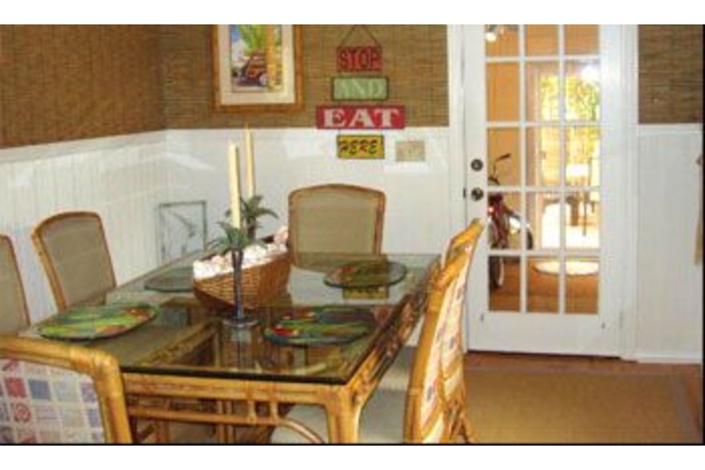 This three bedroom, two bathroom home is within walking distance to the beach. It has a fully equipped kitchen, washer and dryer, large screened TV, VCR, DVD player, surround sound, heated pool and parking. Bedroom one and two have queen size beds. Bedroom three has a twin and trundle bed.Surrounding Description