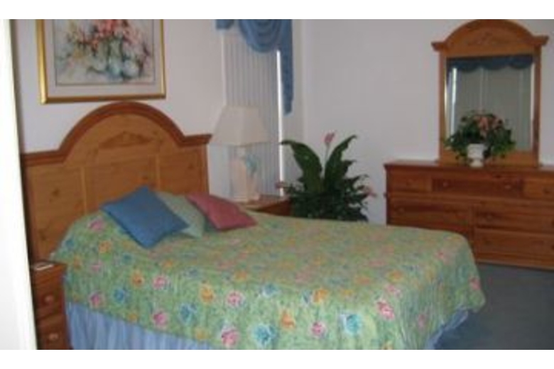 This home features a private swimming pool with beautiful lake views. The home is nicely decorated with a lot of color. The living room features a couch and love seat and tile floors. The master and second bedroom each have a queen bed, and the third bedroom has a set of twins for the kids.Surrounding Description