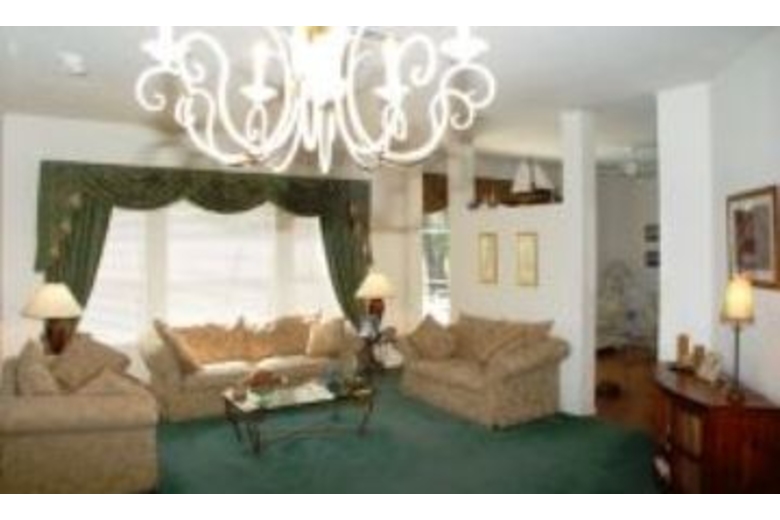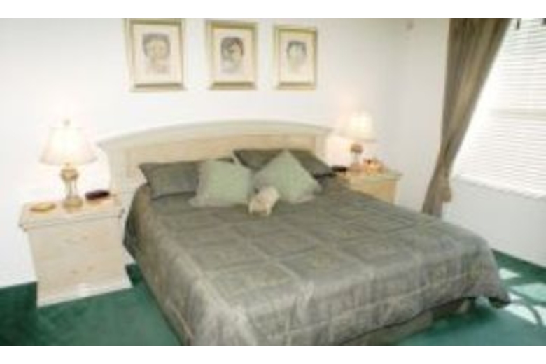 This stylish three bedroom, two bathroom home has an elegant ambiance that will invite you in and make you will comfortable. The living room has plenty of seating, a television with DVD player, and gorgeous lighting. Step out onto the patio in the backyard and view the lake or lounge by the pool. When you go to sleep at night, you can be sure that your security and well-being are number one in this gated community.Surrounding Description