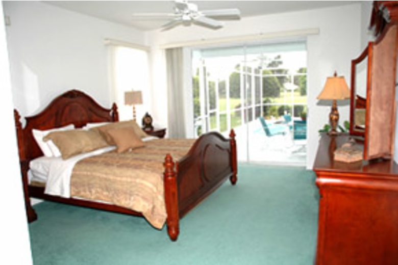 The second bedroom has a double bed. The third and fourth have twin beds. The master bedroom, lounge and family room all enjoy undisturbed views of the ninth tee and lake.