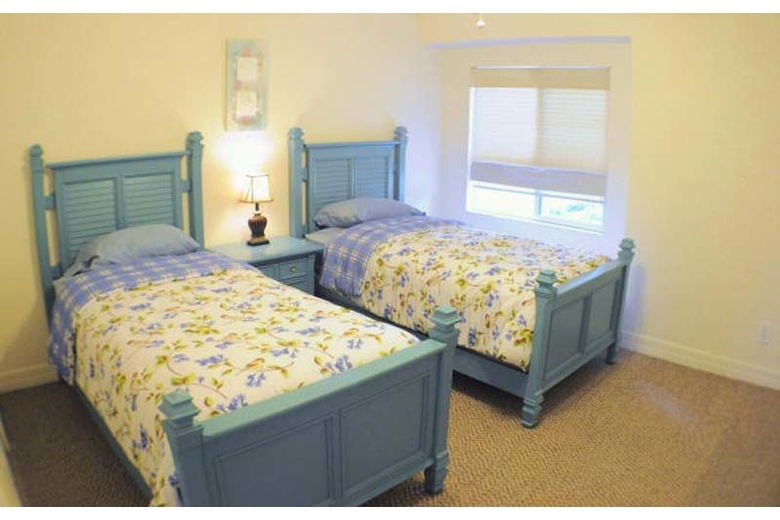 Four individually decorated bedrooms include a master bedroom with King size bed. The other bedrooms offer a Queen size bed, two Twin beds and a daybed. Up to eight guests will find ample room in this beautiful home and their own personal wellness oasis in one of the 3.5 modern bathrooms, each with light-colored tiles.