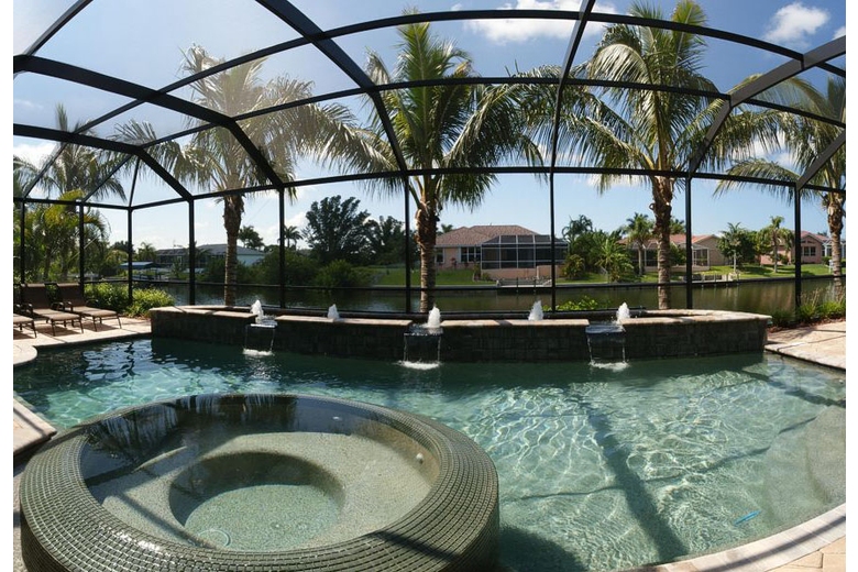 Larger families and friends who want to spend their vacation together but enjoy their own space will want to consider this beautiful cape coral vacation home, which is located on a Gulf access canal within walking distance to Antigua and Grenada. This property is a former model home and features high quality furnishings and tasteful decorations, creating a feeling of warmth and comfort. The south facing patio overlooks a custom-designed pool with spa and an integrated fountain with waterfall. Other features include three elegant bedrooms, three baths, a gourmet kitchen with stylish black granite countertops, a bar in the dining room, and a summer kitchen perfect for a nice BBQ in the evening.