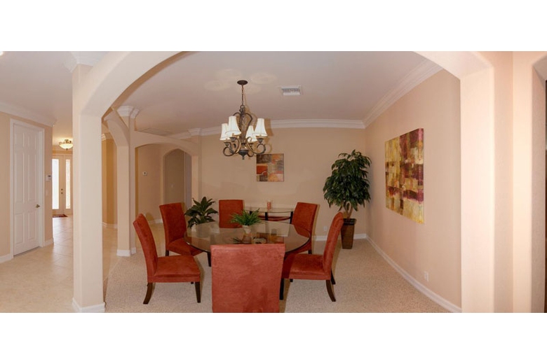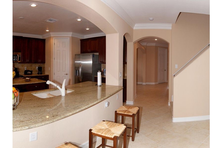 Beautiful modern furnishings and tasteful decorations make this two-story house an inviting home where guests will feel welcome from the start. Villa Bentley 2 - Cape Coral Villa Rental is located on a lake in SW Cape Coral, the view from the large patio is serene and relaxing. Comfortable patio furniture, a gas grill, plus a heated pool and spa, make this area a great spot to unwind. The home features four bedrooms, three baths, a modern open kitchen with stainless steel appliances and granite countertops, breakfast nook, spacious living room, formal dining room surrounded by columns, and a den. The game room on the second floor offers a billiard table, darts, TV, bar, and sleeper sofa.