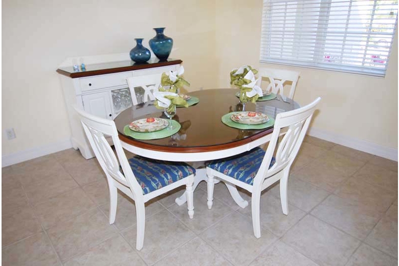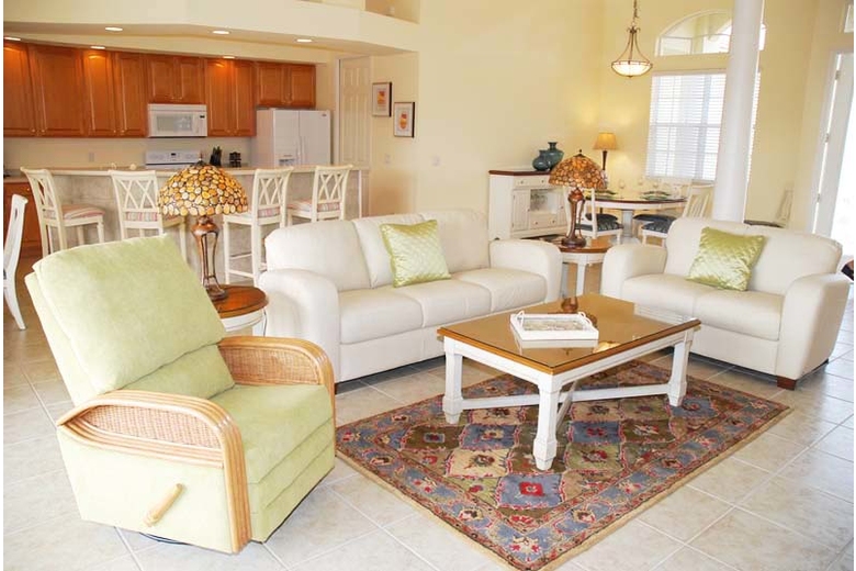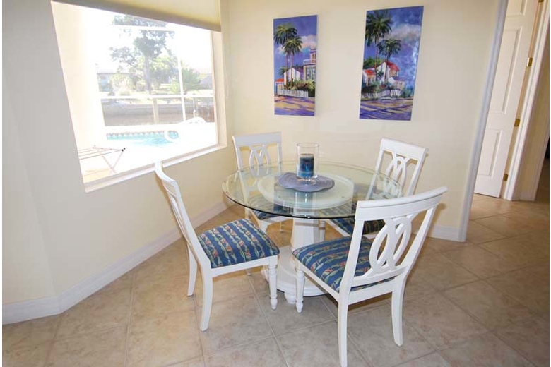 Villa Boaters Dream - Cape Coral Villa Rental is anything but an ordinary Cape Coral vacation home thanks to its unique interior design and decorator accents. White furniture is everywhere, and the dominating colors are Mediterranean, with shades of blue and light green. The overall image is rather like a beach cottage, further enhanced by the color-matched decorations, pictures and accessories.