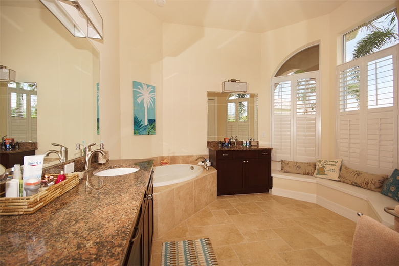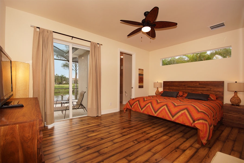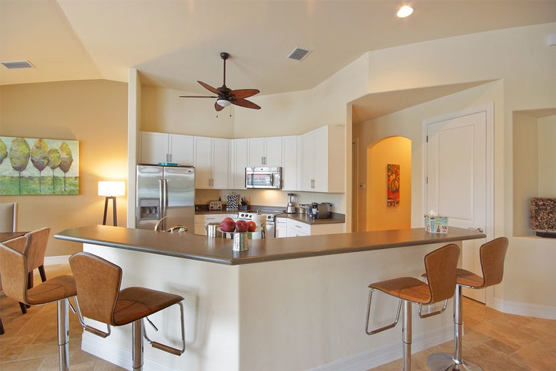 Villa Casa Paradise - Cape Coral Villa Rental is situated in the middle of a small tropical paradise of mature palm trees and lush greenery. The home offers four airy bedrooms with expensive wood floors, light color schemes, very modern and individual furnishings, just perfect for a good night’s sleep. There are two King size beds, one Queen size and two Twin beds. Three spacious bathrooms are equipped with everything to meet the expectations of demanding guests. The upscale kitchen includes a breakfast bar and opens into the dining and living areas. Modern appliances make culinary success in the kitchen easy. Those who unfortunately have to work during their vacation will find the well-equipped office with its expensive wood floors just the spot to set up shop. All of the living and sleeping spaces at Casa Paradise 2 are tastefully furnished and accentuated with hand-selected decorator items, creating an overall impression of style and elegance. Each room features a ceiling fan.