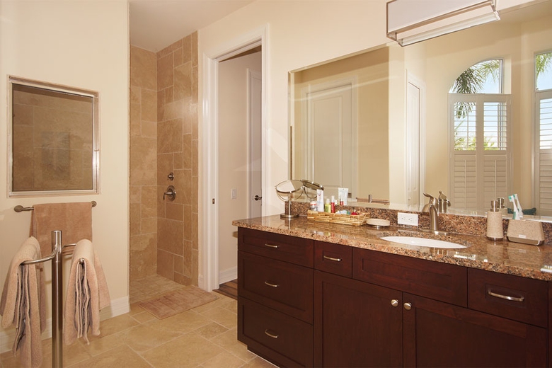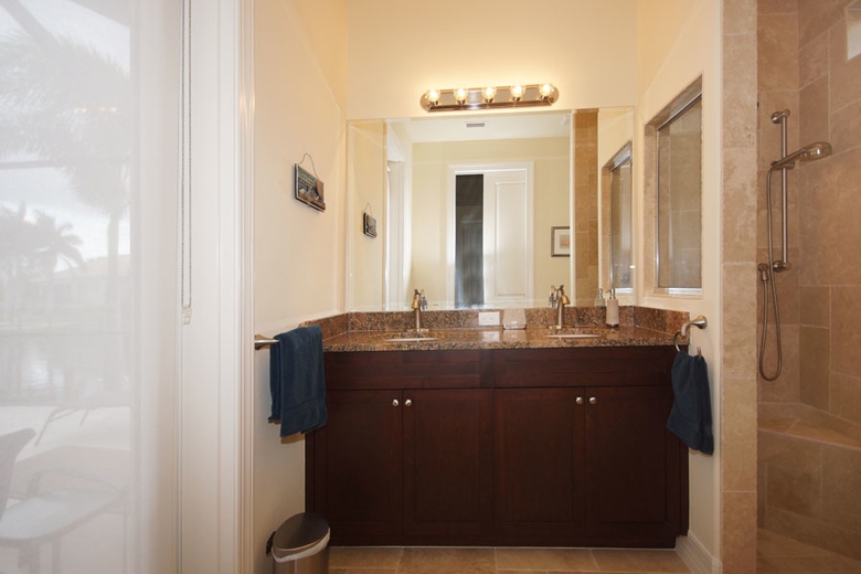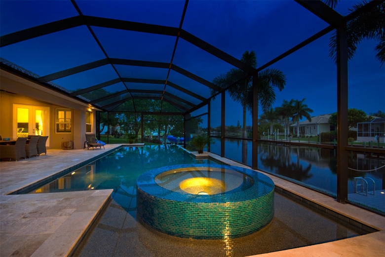 Enjoy hours of relaxation on the large south-facing patio that overlooks the palm-lined canal. Quiet morning and evening hours are a particular joy to experience in this beautiful part of the world. The screened-in area includes a dining area, gas grill, and an electrically heated pool with vanishing edge effect and integrated spa which can also be illuminated. The Casa Paradise 2 offers luxurious surroundings for a perfect vacation in the sun.