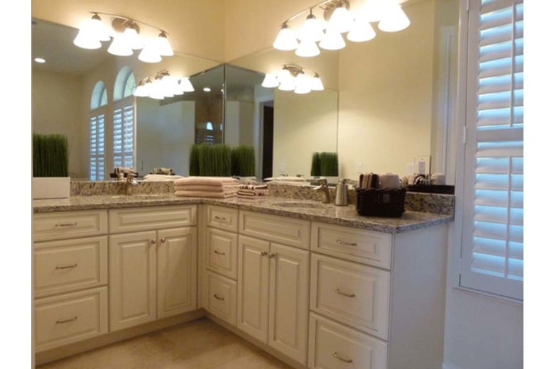 Each bedroom and the living room include a flat screen TV, while a stereo system with Dolby surround sound can be enjoyed in the living room and on the patio. A small but well-equipped den near the entrance offers a quiet spot if work is calling. Wi-Fi is available throughout the entire home. A vacation in Florida usually involves spending a lot of time outdoors. The large patio, the oversized pool (about 40 feet long) and the spa are perfect for that purpose. Modern outdoor furnishings and an integrated gas grill, a very hip sitting area and comfortable lounge chairs are all available. You can enjoy beautiful views of the Cape Harbor Community and the famous Florida sunsets from the covered balcony. When night falls, the tropical garden, pool and boat dock are illuminated. The vanishing edge effect of the pool allows unobstructed views of the dock. Go ahead, rent a boat and head for the beaches along the shores of Sanibel and Captiva Island and Fort Myers Beach. The home is part of the Cape Harbour subdivision and guests are welcome to use the tennis courts and fitness center free of charge. Table tennis and two bicycles are also available at the home.