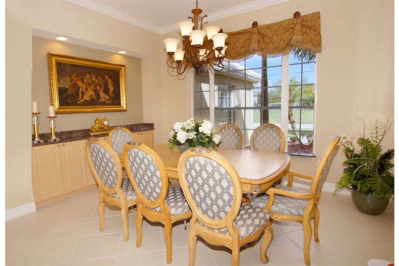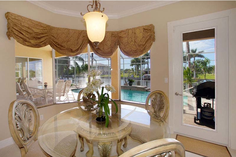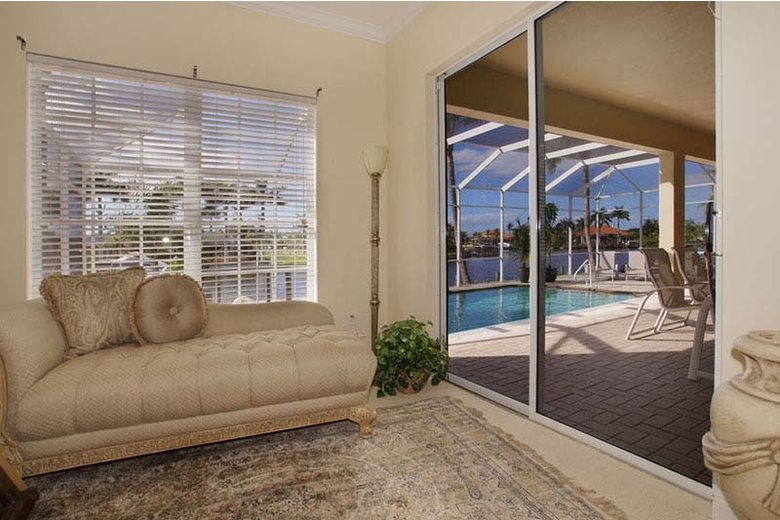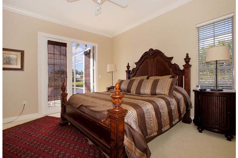 A highly desirable location close to the Cape Harbour community with its popular restaurants (Rumrunner’s, The Joint and Pignoli) and its charming pedestrian zone – that is just one of the features that make this Cape Coral vacation home so attractive. The high-quality, tasteful furnishings and design accents will certainly delight you. The spacious master suite includes a comfortable sitting area and the master bath is rather spectacular with its center tub in black granite. There is a walk-in shower and double sinks, also in black granite, plus a vanity. The home is located on a Gulf access canal and features an electrically heated pool. You know you’re in vacation mode when you settle down with a glass of wine and watch the glorious sunsets from your patio. Why not explore the waterways as well? You can dock your rental boat right by the house.