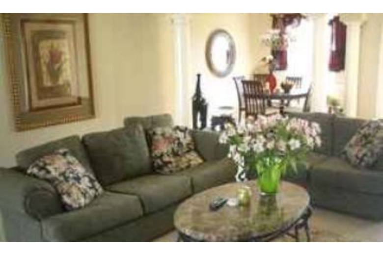 This three bedroom, three bath home comfortably sleeps your group of eight. In the living area there's cable TV, a VCR, DVD player and a sofa sleeper. The dining area seats six with a glass and wrought iron breakfast nook for five. In the fully equipped kitchen you'll find granite counter tops and stainless steel appliances. Bedding consists of one king bed, one queen bed and two twins. In the master bath there's a walk-in shower and a separate tub while the remaining bathrooms both have a tub/shower combination. This home also has internet access and a two car garage.Surrounding Description