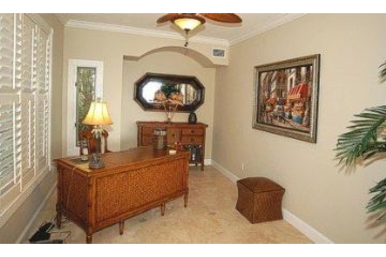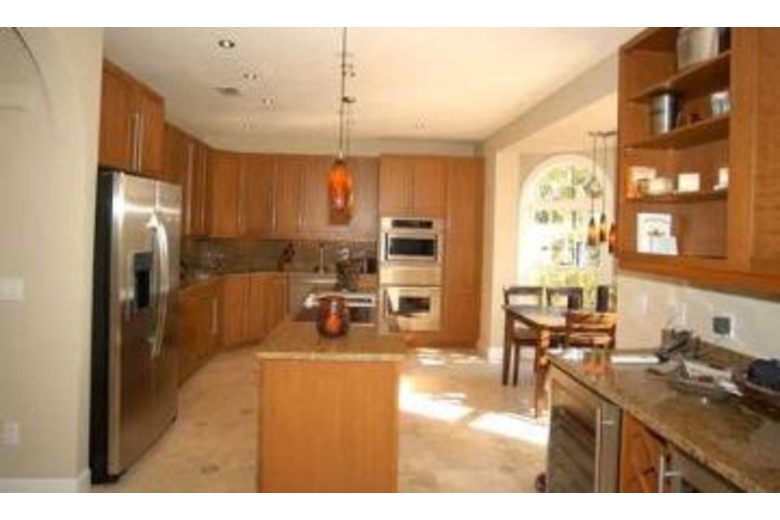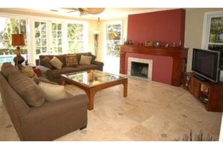 The villa has 3 bedrooms (1 king, 2 queens) and 2.5 baths. The master bedroom and one guest bedroom have TV. Enjoy the view from the master bedroom and the master bath! Cable TV! The gourmet kitchen has granite countertops and stainless steel appliances and German label equipment (Miele + Gaggenau). The living room with it’s french doors has a large flat screen TV (Bose surround system), DVD, stereo and an open fireplace. Next to the living room you have a separate office with fax machine and internet access. The large pool is electric heated.Surrounding Description