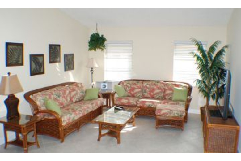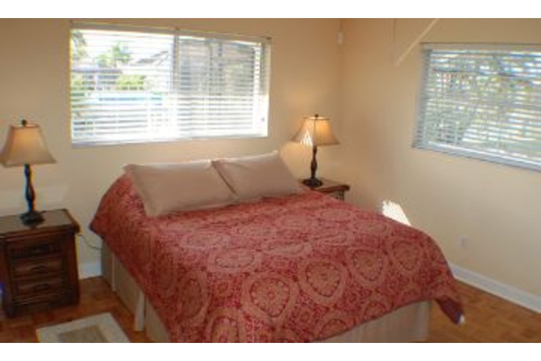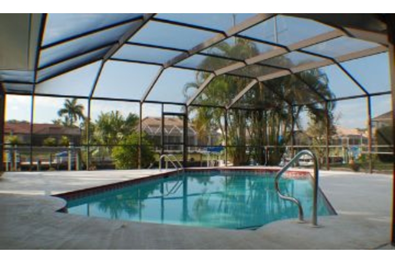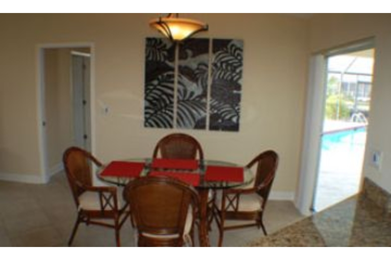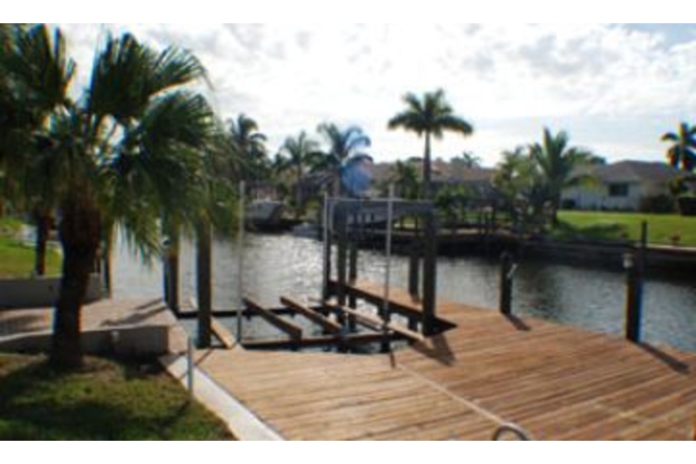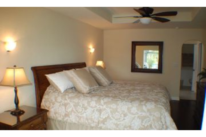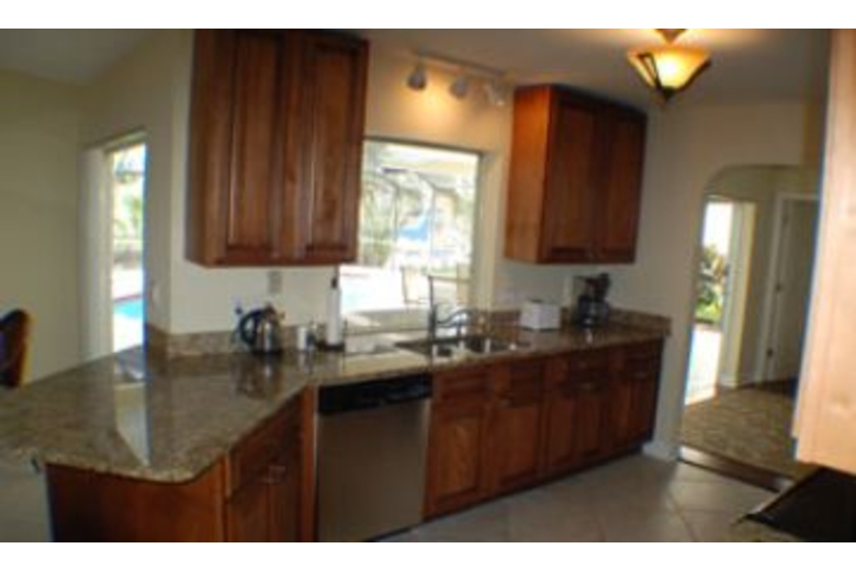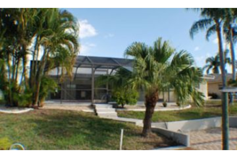 Enjoy the beautiful views of palm trees and a deep water canal from under a huge 1500 square foot lanai/pool area. This area has 3 ceiling fans and lighting for day or evening dining and relaxing by the pool. The lanai opens to the master bedroom, reading room, kitchen, and family room and inside dining room. This 4 bedroom house has just been completely refinished inside and out – everything is brand new including lighting, furnishings, stainless steel appliances, TV’s/BlueRay, towel/ linens, and kitchenware. The 13 by 26 foot family / dining room has a new 50 inch plasma TV (including HD cable channels) with BlueRay as well as high speed internet. In addition to 4 bright and spacious bedrooms enjoy a family room/dining room, poolside reading room, new kitchen with granite counters and new cabinets ,large laundry room with full washer/dryer and ironing facilities, and a double garage. The Master bedroom has panoramic views of the pool and canal as well as TV/DVD and an ensuite master bath with custom cabinets with jacuzzi bath and glass multi-directional “rain-shower”.Surrounding Description