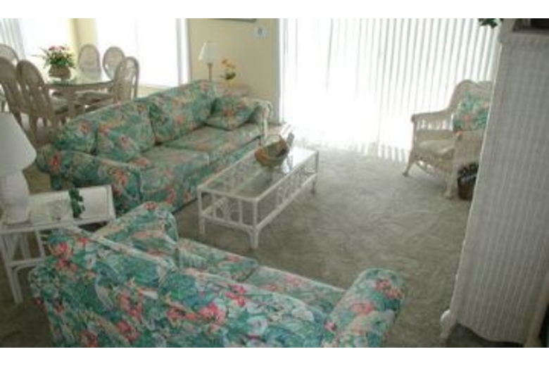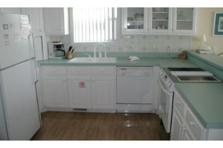 This home features three bedrooms, three baths, a sun deck plus a covered deck. The master bedroom has a queen bed and the second bedroom also has a queen bed. The third bedroom has a bunk bed (two twin beds). There is a double sofa sleeper in the living area for two extra guests. The dining area has a glass table and six chairs. The fully equipped kitchen has a breakfast bar with extra seating, a dishwasher, microwave, coffee maker and hardwood flooring. The living area has a ceiling fan, TV, VCR and stereo. Covered parking is also available with this home.Surrounding Description