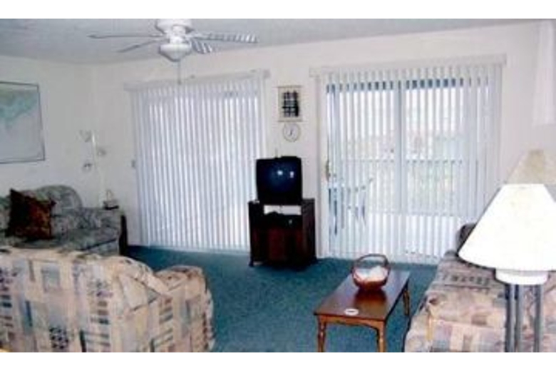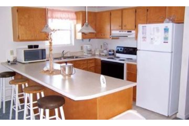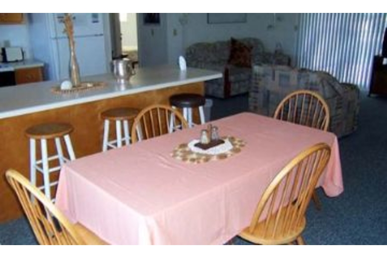 This three bedroom, two bath home features a dining area with a table and four chairs. The living area has access leading out onto the deck, a TV and ceiling fan. The fully equipped kitchen has a breakfast bar with extra seating, a coffee maker, dishwasher, microwave and blender. The master bedroom has a queen bed and the second bedroom has a double bed. In the third bedroom there are two twin beds. For two extra guests, there is a double sofa sleeper found in the living area.Surrounding Description