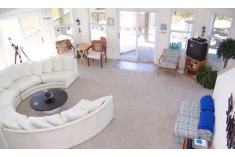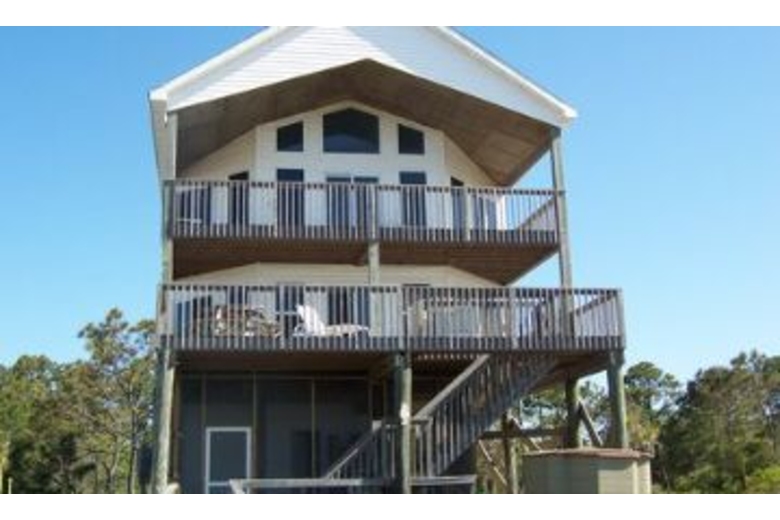 Feel right at home in this three bedroom, three bath home that features a couple of sun decks and a screened porch. The living area has a DVD player, VCR, TV and access leading outside. The dining area is connected to the kitchen and has a table with seating for up to eight people. There is a fully equipped kitchen with a coffee maker, refrigerator and freezer. The master bedroom has a king bed and the master bath has a Jacuzzi tub. In the second bedroom there is another king bed. The third bedroom has two bunk beds; one with a twin on top, double on bottom and the other bunk bed has two twin beds. Also available with this home is high speed internet access.Surrounding Description