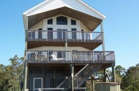 In this home you will find five bedrooms, four baths, a porch swing and picnic table. The living area has a double sofa sleeper and TV. The fully equipped kitchen has a breakfast bar with extra seating along with a blender, dishwasher, microwave and coffee maker. The dining area has a table and seating for six people. The master bedroom has a king bed and in the second bedroom there is a double bed. The third bedroom also comes with a double bed. The fourth fifth bedrooms each have two twin beds. This home is also handicapped accessible and has easy access to the beach.Surrounding Description