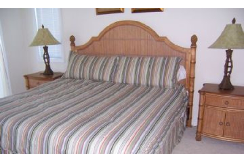 Feel right at home in this three bedroom, three bath rental. The fully equipped kitchen has a microwave, dishwasher, lots of cabinet space and tile flooring. There is a breakfast bar connected to the kitchen with extra seating. The dining area has a table, tile flooring and six chairs. The living area has tile flooring, a VCR, DVD player and TV. This home also has high speed internet access and an outdoor shower. The master bedroom has a king bed, VCR and TV. The second bedroom also has a TV, VCR and king bed. In the third bedroom there is another VCR, king bed and TV. There is a ceiling fan outside on the covered porch.Surrounding Description