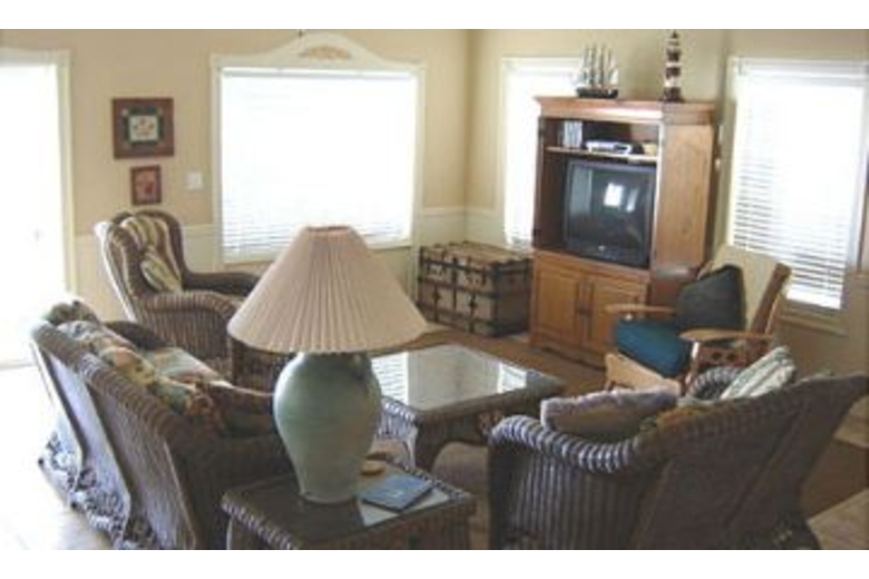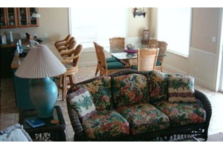 This is a five bedroom, three in a half bath home that sleeps up to ten people. In the living area you will find a TV, DVD player, ceiling fans, and cozy furnishings. The dining area is just off the living area and has seating for six. The kitchen comes fully equipped and has a breakfast bar with seating for four. There is a king bed in the master bedroom and a jetted tub in the master bath. Two bedrooms each have a queen size bed, one bedroom has two twin beds, and the fifth bedroom has a daybed and a trundle.Surrounding Description