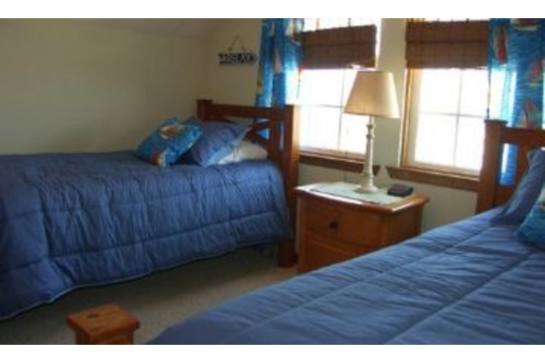 Has a porch swing and large wooden picnic table with mounted gas grill. A perfect place to relax and feel totally at ease. The master bedroom has a queen daybed w/trundle, upstairs bedrooms have 2 twins in one room and a queen bed in the room overlooking the road. Home also has TV with VCR, new carpets, a full laundry room, outside shower and dedicated boardwalk to the beach.Surrounding Description