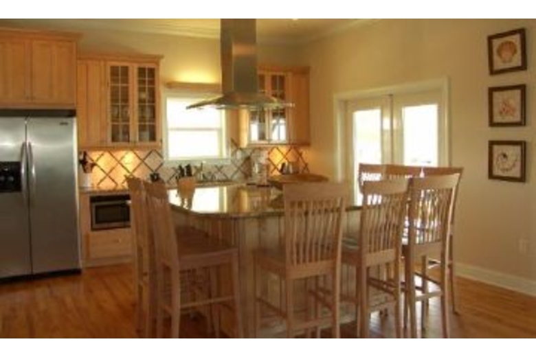This gigantic 5 bedroom plus large upstairs loft, 5 bath house is loaded with the finer things in life such as hardwood floors throughout, stainless appliances, granite countertops, granite fish cleaning station, enclosed outside shower, intercom system, separate ice maker, multi-level wrap around decking, tile baths, teak furniture and porch swing, separate dining room and a computer for your convenience.Surrounding Description