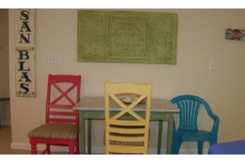 Floor Plan: 1st Level-Living room that opens onto a gulf front deck with a TV/VCR and radio; dining area, kitchen, full bath and Bedroom 1-gulf front bedroom with balcony, queen bed and TV; 2nd Level-Bedroom 2-gulf front master bedroom with king bed, balcony and full bath with laundry room that connects to Bedroom 3-another gulf front bedroom with balcony and 3 twin beds.Surrounding Description