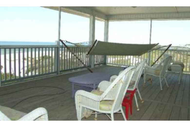 This beautiful home sits gulf front and is literally the last house on the cape before the entrance to the St. Joseph Peninsula State Park. This home has all the amenities you would expect of luxury accommodations at the beach, including large bathrooms,jacuzzi, huge screened in porches, top of the line kitchen with granite countertops and ice maker, two hammocks and a grill. If privacy mixed with nature is what you crave, this is the place! The kitchen and living area are large enough for everyone to enjoy.Surrounding Description