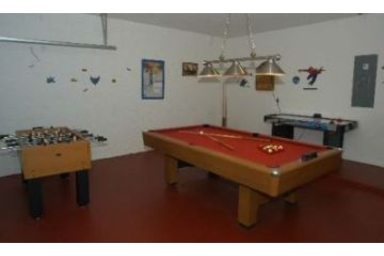 We have a wonderful lake view which also has a conservation view which is not overlooked. Relax by our over sized private pool and raised spa and watch the fireworks from Disney or why not visit our superbly equipped games room which includes a full size pool table, air hockey, electronic darts, bar stools and a table.The open ceiling adds to the incredible feeling of space. This is the home of the cinema TV and is beautifully furnished with an L shaped sofa making the movies a really comfortable experience for a large audience. The lure of the night-lit jacuzzi tempts away those more interested in star gazing in the Florida sky. There are two separate dining areas, one situated by the pool entrance. Both are adjacent to the kitchen area. The large kitchen has all you’ll ever want with a hob, oven, microwave, fridge, freezer, dish washer, iron and board, toaster, kettle, coffee maker, food processor, juicer and liquidizer. Don’t feel you have to, but there is no need to take your clothes home dirty – we have a washer and tumble dryer ready for you to use.We have on the ground floor a master bedroom with a king size bed and en suit bathroom. There are further three bedrooms all with queen size beds and there are also 2 twinned bedrooms for the kid's. The lounge area is professionally designed by an Interior Designer- with beautiful leather sofas and a huge TV with an entertainment center. We ask that you refrain from bringing your pets or from smoking within the home.Amenities:The house offers a huge pool area, and big raised hot spa / Jacuzzi. We have extended the decking so there is plenty of space for your group to relax on our comfortable chairs and sun loungers. The pool area outside kitchen makes it a great place to cook and eat as well as to relax and soak up the sun. All the rooms are spacious allowing several families to have their own space. Other amenities:• Fully air-conditioned• Ceiling Fans• Stereo System• Microwave• Telephones (free local calls)• Washer / Dryer• Linen & towels• Fully equipped kitchen• Child Crib and Highchair Additional Rental Information: The registration form and security deposit authority document require completion, signatures and return together with a photo ID of the card holder and a copy of the credit card being used before the reservation is fully confirmed. Any changes or cancellations must be in writing. There may be an extra charge for pool heating due at check in.Surrounding Description