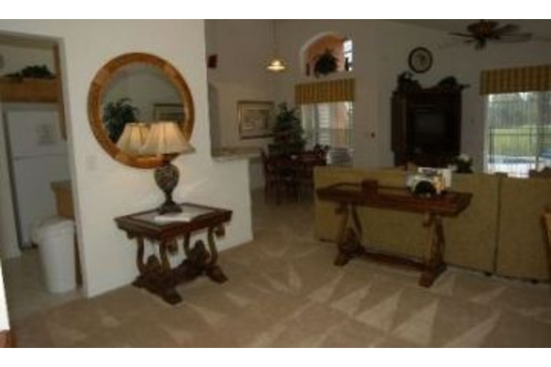 The clubhouse also includes game arcade room · vending area by pool · cyber cafe · 3 ponds · tot lot · sand volleyball court · future other recreation amenities to be built in areas other than the main area: beaches and grills · nature trail with gazebo · benches · code to gain gate access · no guard · wooded preserve with nature trails.A beautiful Platinum class 4 bedroom 3 bathrooms,l ake view pool home furnished to the highest standard with an additional air conditioned game room. The pool area backs onto water and conservation views in a wonderful new community only minutes to Disney World. This house is a kids paradise. It has a games room, large screen TV, TV's in the bedrooms, DVD, VCRs, and Stereo system. In addition we will have a play station2 with games and lots of goodies for the kids old and young alike.Bedrooms: 4Bathrooms: 3Sleeps:8 Bed Configuration: KM-QM-TT-TT-private pool -spa -lake view -games room -free international calls -gated community Additional Rental Information: The registration form and security deposit authority document require completion, signatures and return together with a photo ID of the card holder and a copy of the credit card being used before the reservation is fully confirmed. Any changes or cancellations must be in writing. There may be an extra charge for pool heating due at check in.Surrounding Description